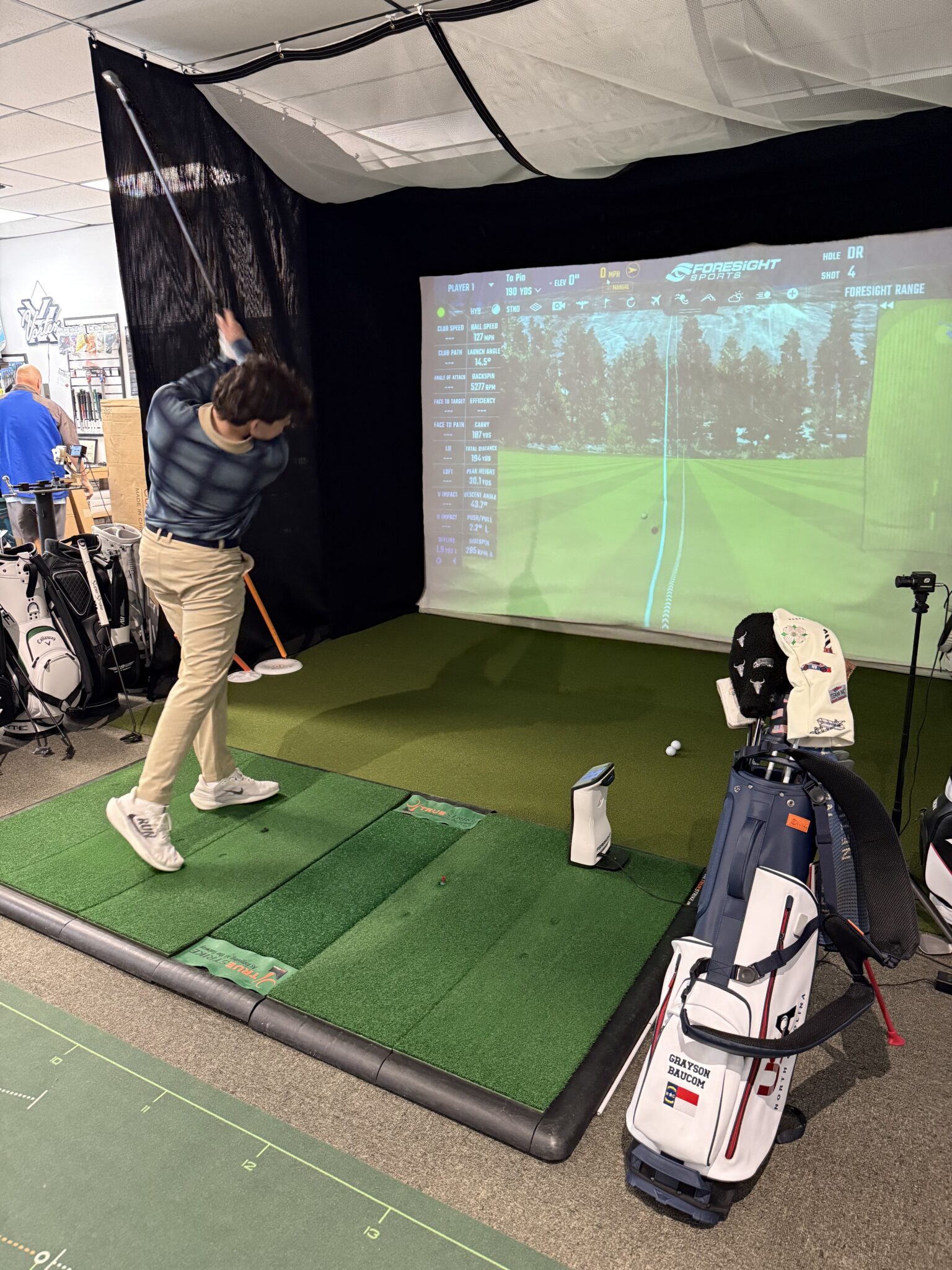 “Fitting, club building and sales are our bread and butter,” says Mundy. “We have two Foresight Sports QuadMAX launch monitors in our indoor hitting bay.”