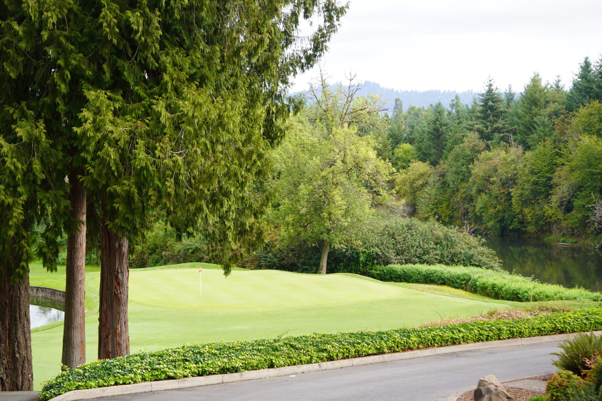 Crawford puts responsible course management into practice with updated irrigation software for uniformity and to reduce wet and dry spots. Spraying schedules are carefully timed to minimize pesticide impacts to pollinators, which are essential species for the course’s flowering plants and wildlife. Holes running along the Tualatin River have native redtwig dogwood (Cornus sericea) preserved for erosion control on river banks. A seasonal wetland on hole seven shows the coexistence of golf and nature as the native plants benefit the local wildlife, particularly the deer population. Additionally, the strategic use of fescue to separate some tee boxes supports native flora and reduces overall maintenance.
